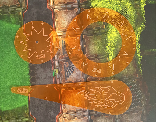 Necromunda requires a specific set of three templates. This can be bought from a number of places or raided from old sets of 40k if you have them.