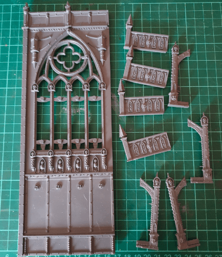 Again, not works of art, but I now have the plan. A tower, one side with an ornate window (the original GW piece), two sides that will be pretty much blank, but one will have a small door accessed by a ladder. Stairs would be nicer but add to the footprint. Plus, if I work this right, one of the stairs pieces I have could sit alongside it.