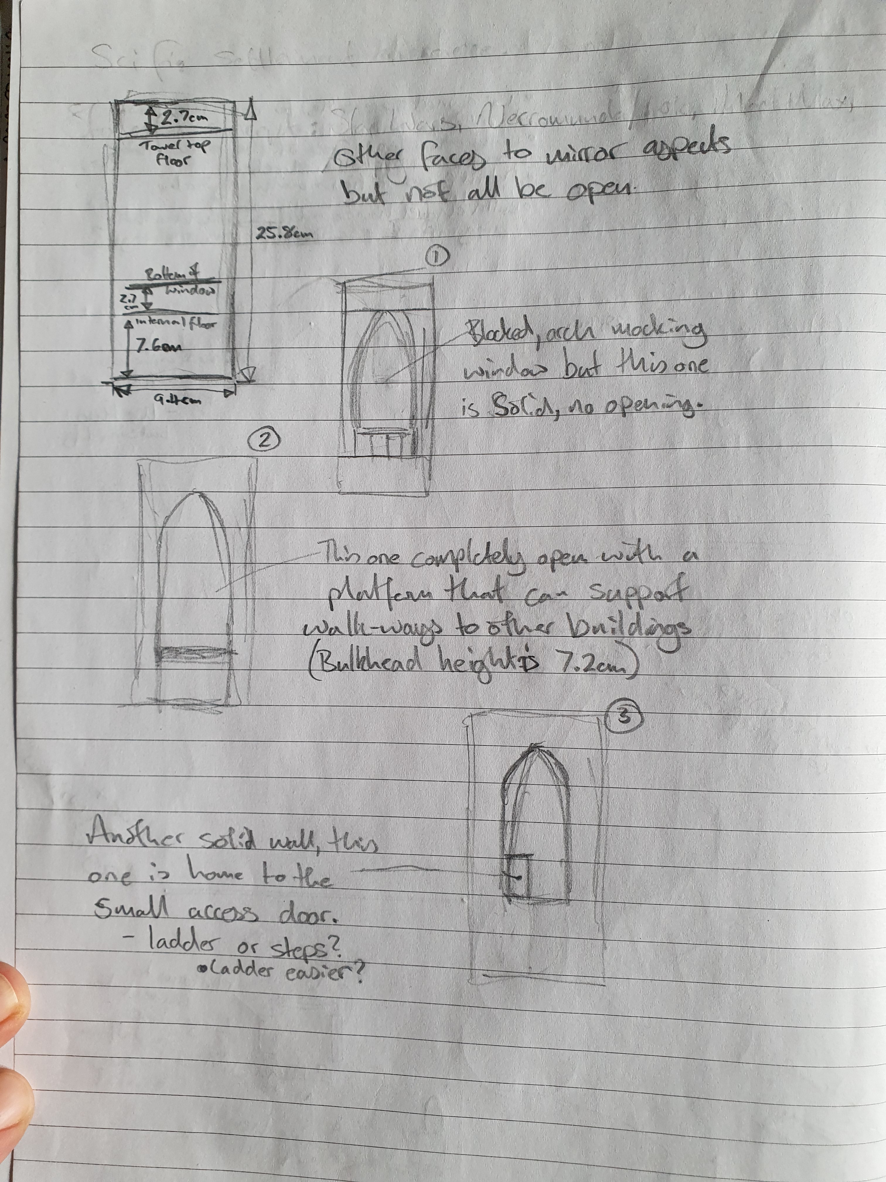 With those concepts in my head, pulled out the notebook and over a few sessions of baby on shoulder I managed to scribble down some rough sketches, measurements and concepts for what was starting to form in my head.