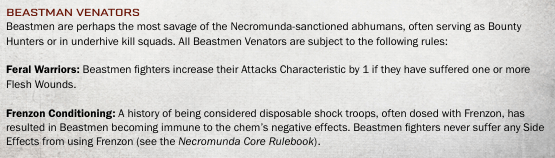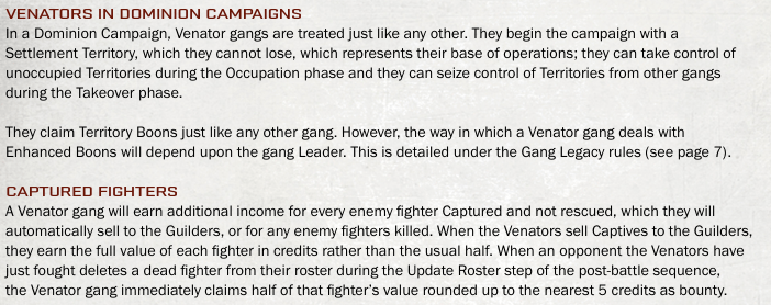 Outside of this Apocrypha Ratlings and Beastment don’t have gang rules, so it also gives you the option to use these rules to play these two factions as well. Basically, you get two gang options alongside the Venators themselves. Each of these have their own rules too.